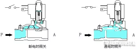原理:通电时,电磁力把先导孔打开,上腔室压力迅速下降,在关闭件周围形成上低下高的压差,流体压力推动关闭件移动,阀门打开;断电时,弹簧力把先导孔关闭,入口压力通过旁通孔迅速进入上腔室在关阀件周围形成下低上高的压差,流体压力推动关闭件向下移动,关闭阀门。特点:流体压力范围上限较高,可任意安装(需定制)但必须满足流体压差条件。