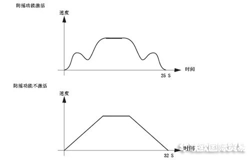 防摇未投入时:起动、停止、加速、减速晃动严重,工件摆动距离为±80cm左右,且需要超过相当长时间,工件才能静止。吊钩无法正常吊动。且无法在短时间内从一工位稳定的移至另一工位。
