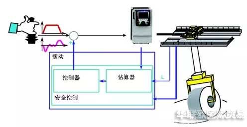 防摇摆控制是利用钟摆原理,通过修改发给电气控制系统的速度命令信号而连续限制摆动。通过检查吊钩的起升高度来计算摆动的角度,然后通过给定的加速度和减速来抵消摆角。当物体在达到设定的速度或者停止摆动很小或者基本没有摆动。
