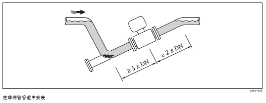 如可能,传感器的安装位置应远离阀、三通、弯头等管件。 保证下列前后直管段长度,确保测量精度: • 前直管段长度:³ 5 × DN • 后直管段长度:³ 2 × DN