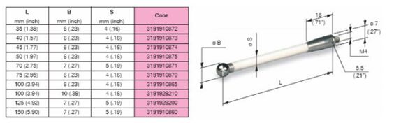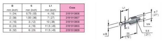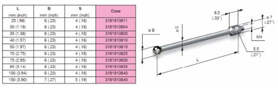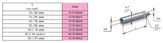 MARPOSS根据客户需求可以提供陶瓷和钢两种材质的测杆。在选择测杆的时候,应尽可能使用最短的测杆当必须使用长的测杆时,最好选择陶瓷材料的测杆,尽可能避免使用延长测杆,特殊测杆可以特殊订购。