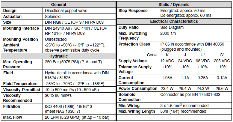 PARKER换向阀D1SE系列可以与标准的DIN NG06,CETOP03和NFPA D03兼容。由于3/2路设计,端口A是无论以P连接或在水箱排出。该中立的立场(电磁阀未激活)通过复位弹簧自动拍摄。这个位置一直保持到电磁线圈通电。阀体具有全钢结构设计,重要的内部功能零件硬化,阀芯和阀座耐磨。阀门的提升包括激活杆和电枢,当电磁位于加压油室的连接阀门时,提升设计就不会有微分区轴向操作方向(开启,关闭)。因此,即使在压力下,它的静态压力平衡可以使阀门在两个流动方向下切换。