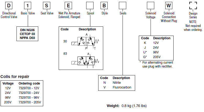PARKER换向阀D1SE系列相关型号: